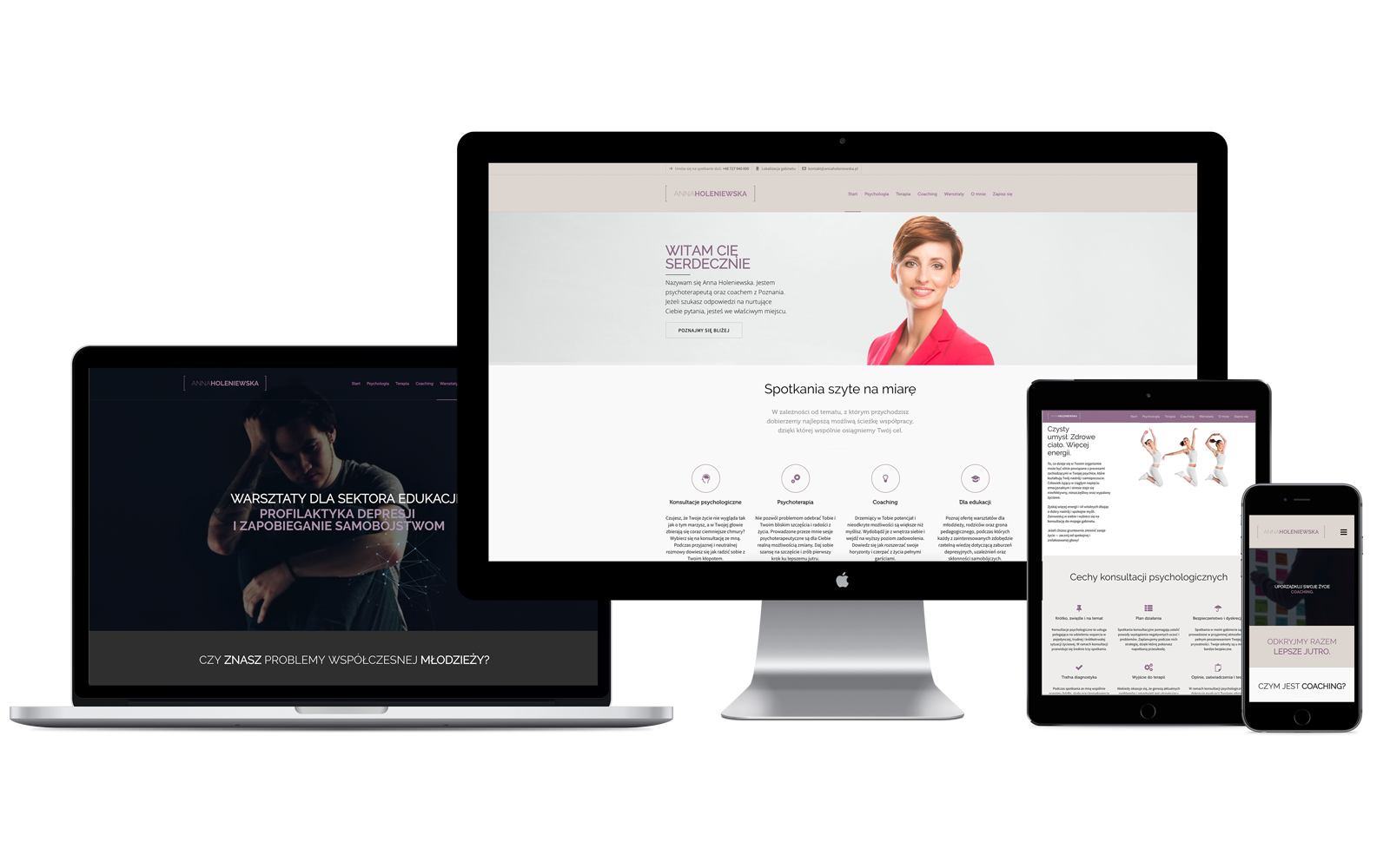 Strona została podzielona na cztery zakładki opisujące różne rodzaje usług terpeutyczno-psychologicznych, zakładkę opisującą samą Annę, stronę kontaktową oraz startową.
